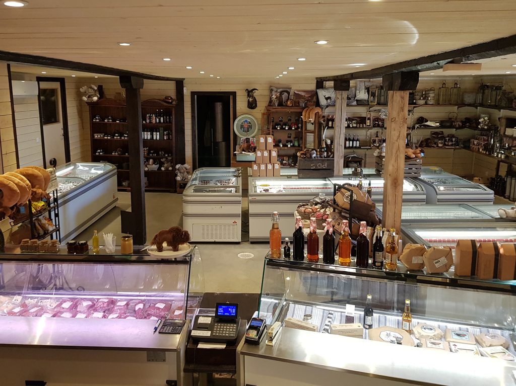 På gården tillverkar vi egen korv, honung, har kräftodling, röker fisk, räkor mm och har ett eget slakteri så vi vet att det vi säljer är bra produkter.